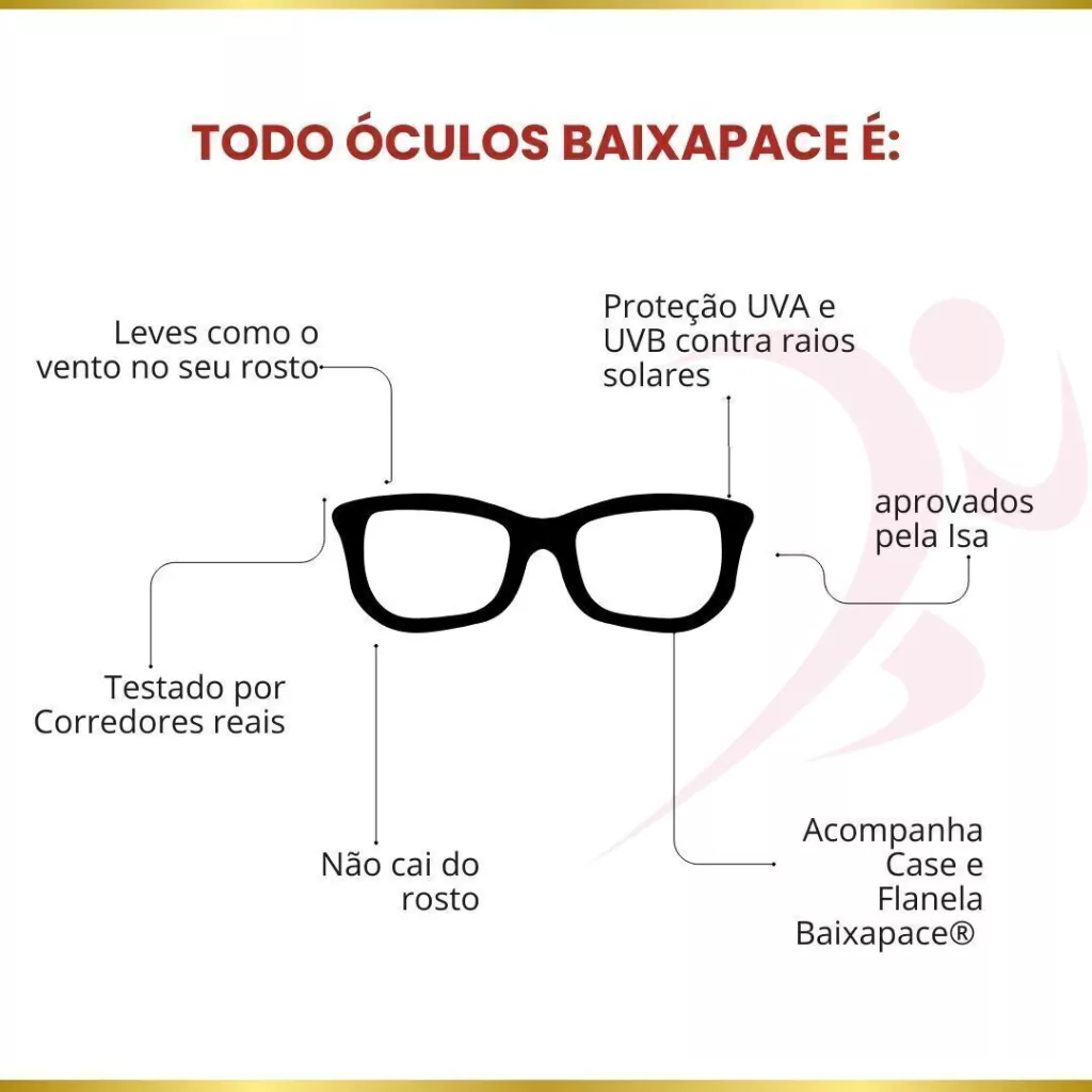 Exclusividade Baixa Pace®: Disponíveis apenas na Baixa Pace, os Óculos de Sol FLORIPA COLORS são a escolha certa para quem quer se destacar e correr com um acessório exclusivo e de alta qualidade.