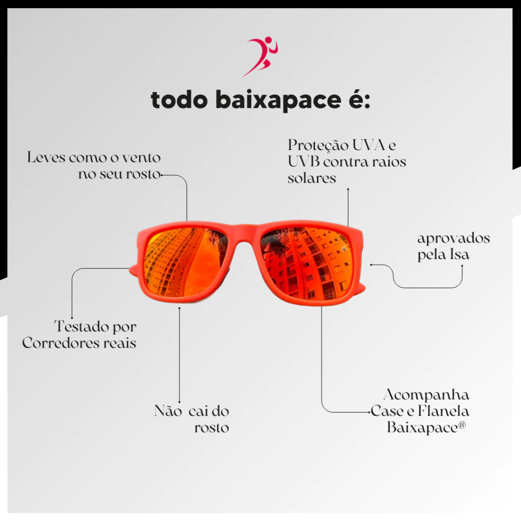 • Exclusividade: Disponíveis exclusivamente na Baixa Pace, os óculos que mais Baixa Pace no Brasil agora farão parte do seu dia a dia na corrida, oferecendo um diferencial que só você terá.